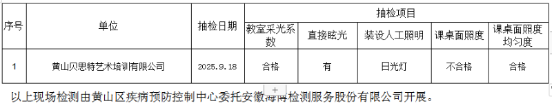 黄山区2025年校外培训机构(美术、书法)采光照明双随机抽检结果