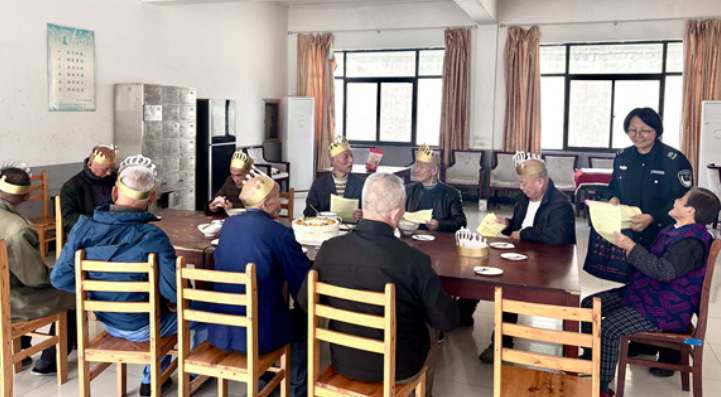 在龙门乡敬老院,一场热闹温馨的“重阳集体生日会”如约而至。工作人员提前布置好活动现场,桌上整齐摆放着定制的生日蛋糕、长寿面与煎鸡蛋。活动中,普法志愿者们为每位寿星戴上生日帽、切分蛋糕。针对老年群体最关心的养老诈骗、电信诈骗、财产继承等法律问题,结合近期发生的“虚假养老服务”“低价保健品骗局”等典型案例,用通俗易懂的方言讲解诈骗分子常用套路及防范技巧,提醒他们“不轻信、不透露、不转账”。现场发放《老年人权益保障法》《防范养老诈骗手册》等宣传资料50余份,将法律知识送到老人身边,为他们的晚年生活筑起一道“法治安全线”。