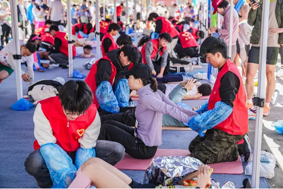 赛事当天,组委会在赛道沿途5公里起每间隔2.5公里设置一处补给站,每2.5公里设置一处固定医疗站,共配备了一千余名志愿者及医护人员,全程守护跑者安全。来自黄山职业技术学院的青年志愿者王祥宇表示他们将用专业与热情,为每一位选手保驾护航。