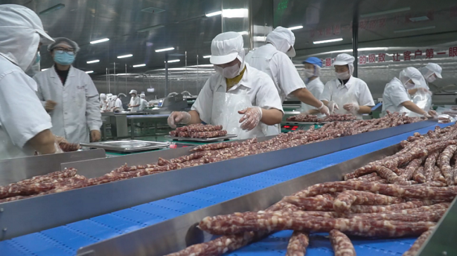 在黄山全江生态农业科技有限公司,腊味晾晒场上一排排整齐悬挂的腊味泛着诱人光泽,车间流水线高效运转,工作人员有条不紊地进行称重、包装、封箱。当前正值年货市场热销期,该公司日均产出20万包腊味产品,销售区域辐射全国30余个省区市、200余个城市,合作餐饮品牌达3000家以上。