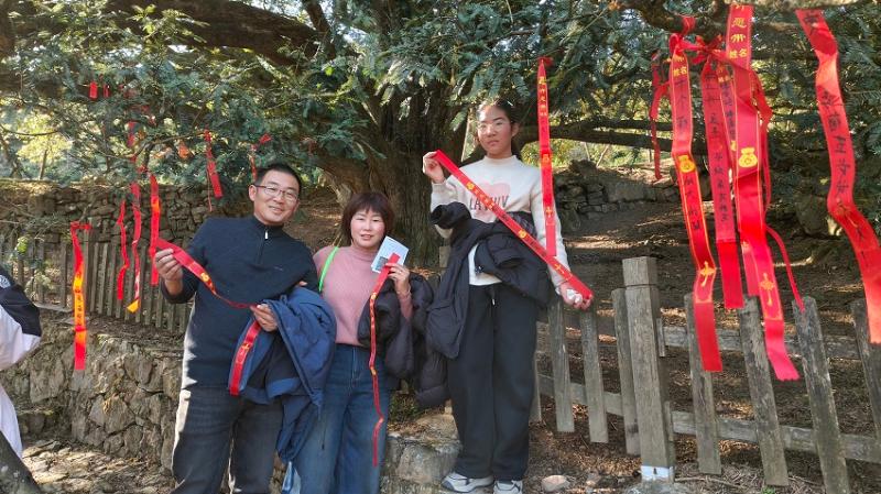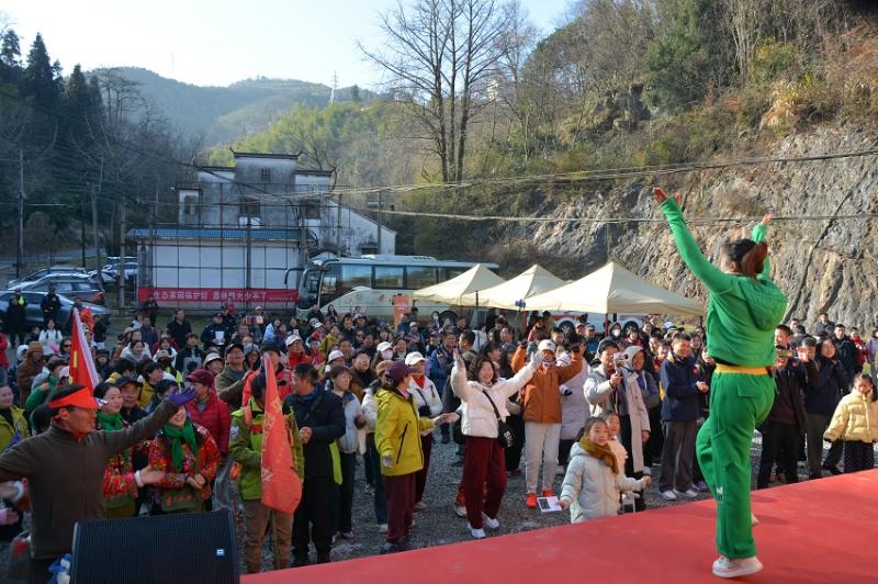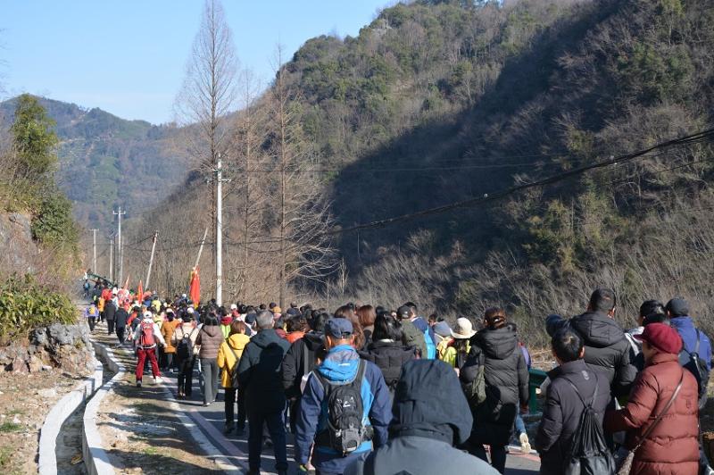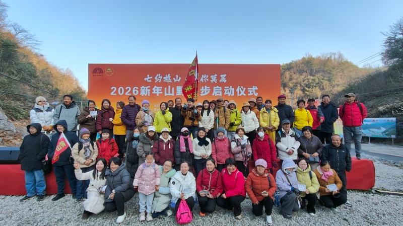 冬日的樵山,层林尽染间藏着生态秘境,红韵流转中沉淀着初心使命。1月10日,由新明乡人民政府主办的“七约樵山・榧你莫属”山野漫步活动如期举行,500余名市民游客齐聚樵山徒步登高,共同开启一场集生态体验、红色传承、农旅融合于一体的新年之旅。