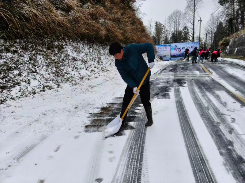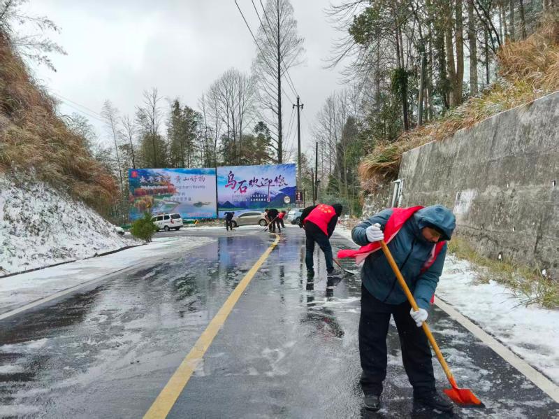 1月20日清晨,寒潮天气导致黄山区乌石镇迎来降雪。位于高海拔、多弯道路段的罗岭地带积雪明显,对过往车辆通行造成影响。为及时消除安全隐患,乌石镇政府迅速行动,第一时间组织镇、村干部奔赴一线,全力清扫积雪、疏导交通,有效保障了辖区道路的安全畅通。