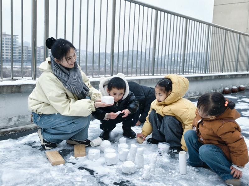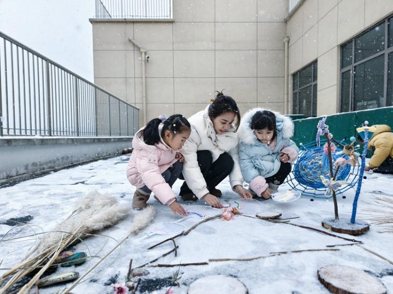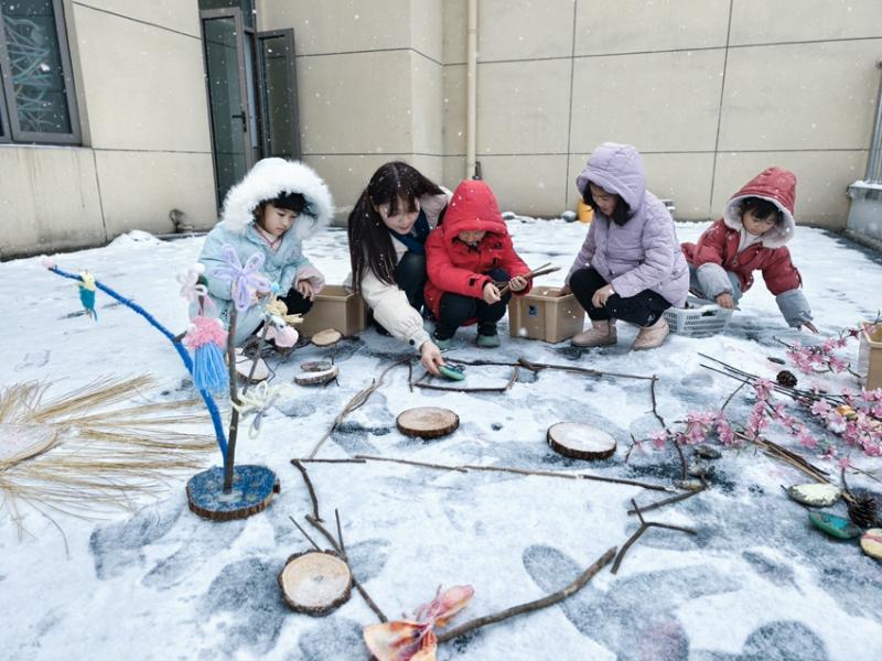 大寒时节,瑞雪如期而至,为黄山脚下的浦溪幼儿园披上了一层晶莹的白纱。幼儿园紧抓这一难得的自然教育契机,于1月20日组织全园幼儿开展了一场以“大寒·雪趣”为主题的系列自然美育活动。孩子们在银装素裹的天地间自由探索,将冰天雪地转化为生动鲜活的“天然课堂”,在嬉戏与创造中深化对季节的感知,体验自然之美与探究之趣。