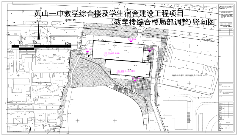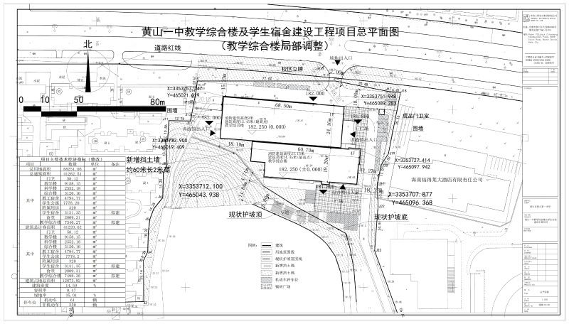 该项目位于黄山区城区,建设单位为黄山第一中学,用地性质为教育用地。学校总规划用地面积88251.06平方米。原规划于2024年4月进行批复,现黄山第一中学根据实际使用需求,申请对上一轮规划方案进行调整,主要调整内容:1、教学综合楼单体建筑规模,面积由7155.98平方米调整至7540.27平方米;2、地块北侧出入口及围墙调整。