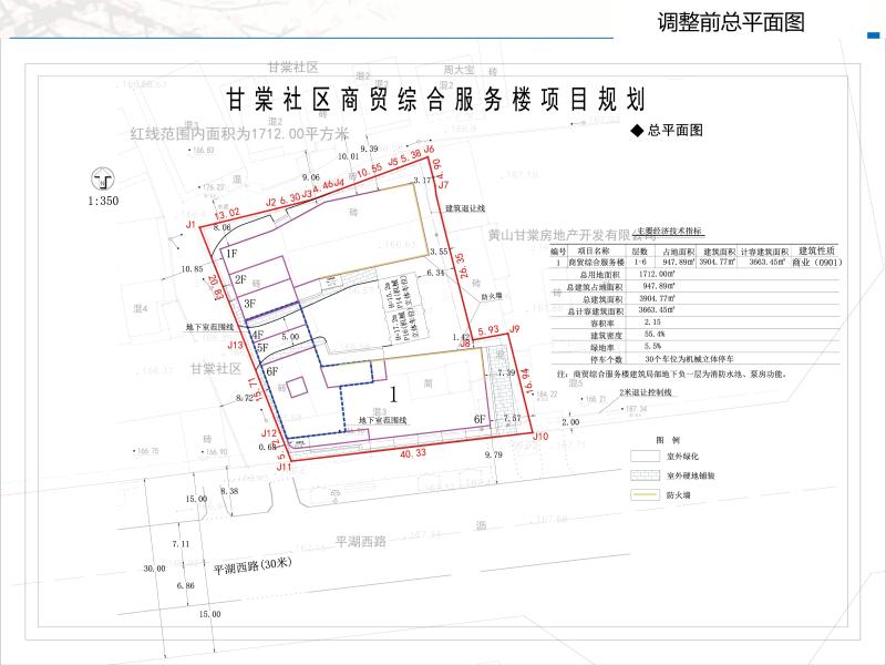 甘棠社区商贸综合服务楼项目位于黄山区平湖西路北侧,建设单位为黄山区甘棠镇甘棠社区居民委员会。地块用地性质为商业用地,用地面积约1712.0平方米。