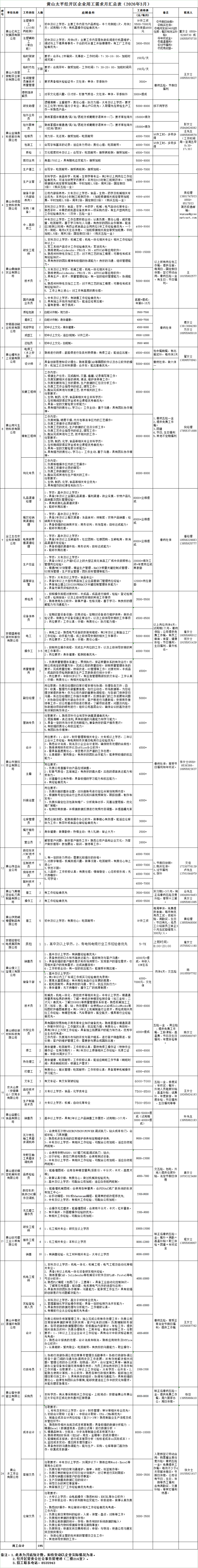 黄山太平经开区企业用工需求月汇总表(2026年3月)