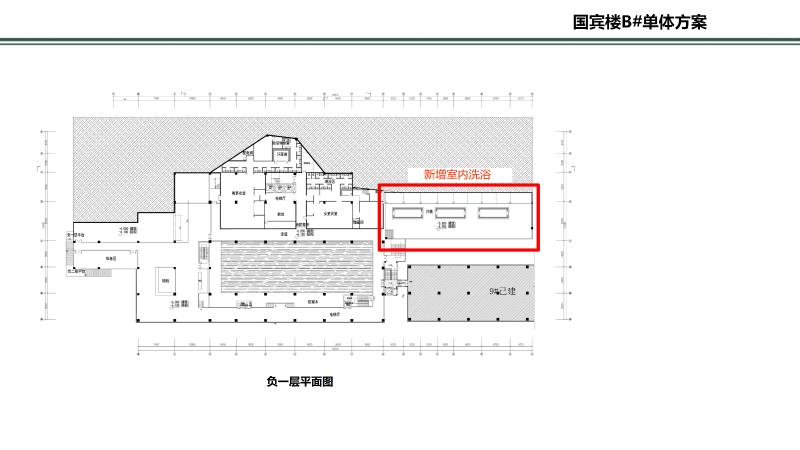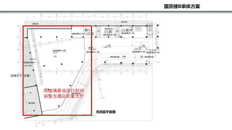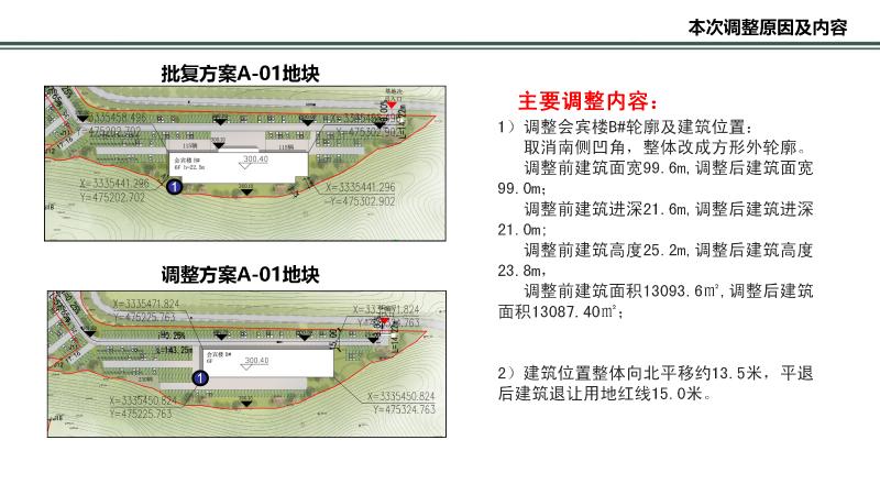2、A-01地块:调整酒店(会宾楼B#)轮廓及建筑位置。