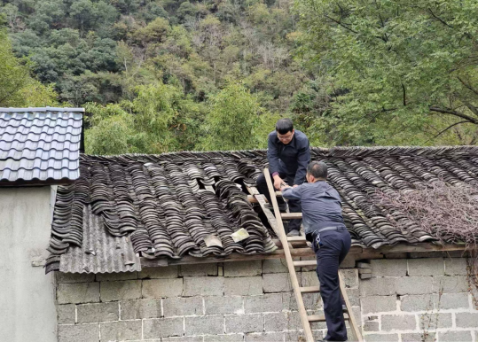 为尽快解决老人的实际困难,当天下午,驻村工作队与村“两委”干部一同行动,带上筹集到的村民闲置的小瓦来到鲍大叔家中。大家爬上房顶,更换破损瓦片,经过近三个小时的忙碌,屋顶破漏问题得到彻底解决。