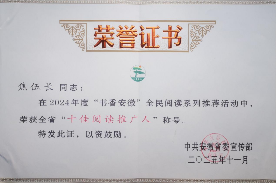 喜报!黄山区甘棠中心学校退休教师焦伍长入选“十佳阅读推广人”