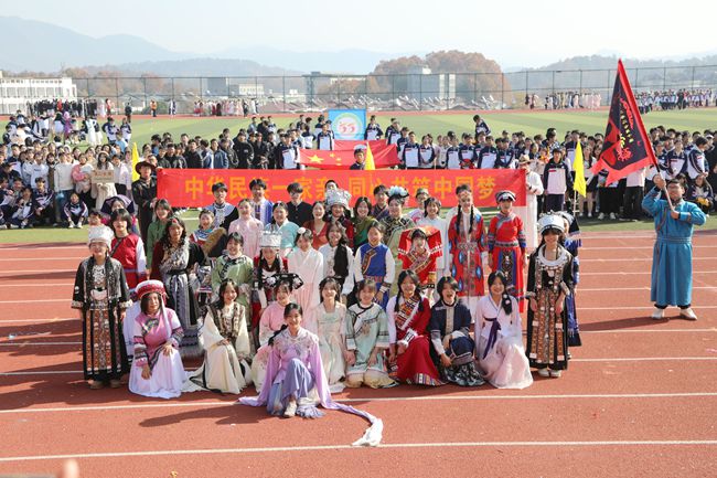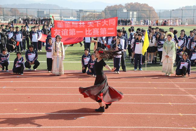 伴随着激昂的运动员进行曲与方楷瑞、谷若萱同学的精彩解说,三个年级31个代表队依次入场,同学们衣着鲜艳、步伐整齐,展现出昂扬向上的精神风貌。在入场才艺展示环节,各班围绕班级特色、校园文化及时代主题,通过创意造型、舞蹈表演、口号展示等形式,彰显了同学们的想象力与个性风采,赢得观礼台阵阵掌声。
