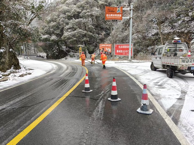低温雨雪冰冻天气来袭!黄山分中心针对恶劣天气状况,枕戈待旦,以同时间、多班次模式巡查管养路段内通行情况。