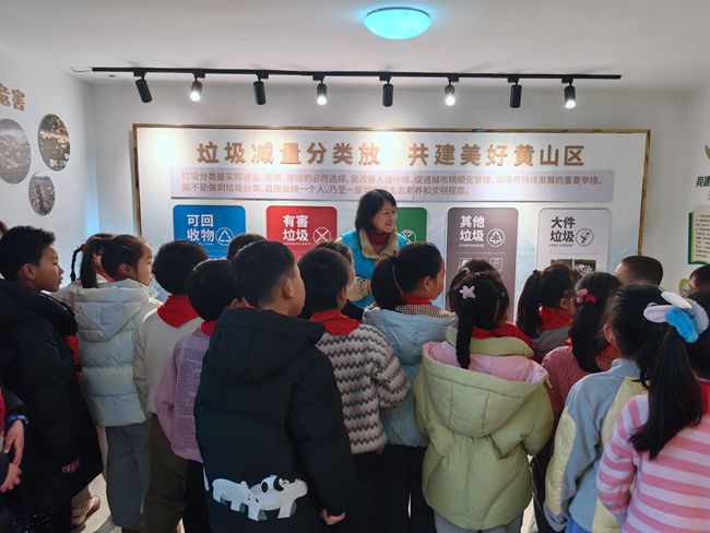 小朋友们分批来到黄山区环卫基地,实地参观生活垃圾进入垃圾中转站内的处置流程,在平东社区会议室听取了垃圾分类知识讲座,共唱《垃圾分类歌》,并参观了芙蓉广场垃圾分类宣教室,参与“垃圾寻宝”和“垃圾分类大转盘”游戏。通过多种形式,进一步了解垃圾的产生、垃圾的危害、垃圾的分类收集、垃圾转运和分类处置流程等知识。