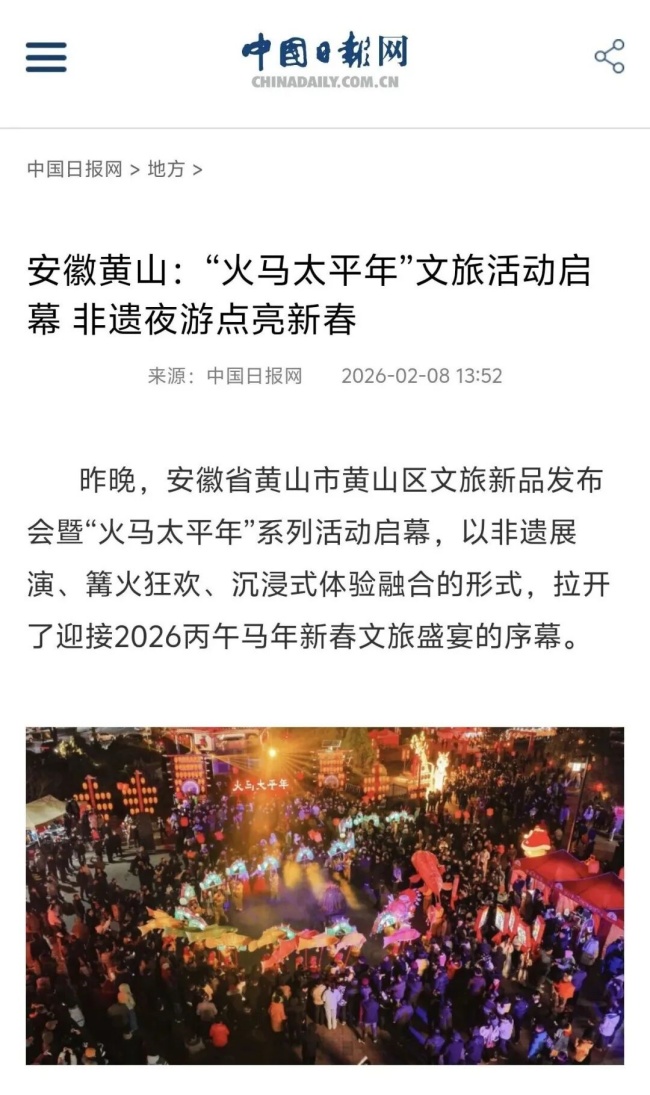 火马燃新春 文旅市场热力全开—— 黄山区2026年春节假日旅游综述
