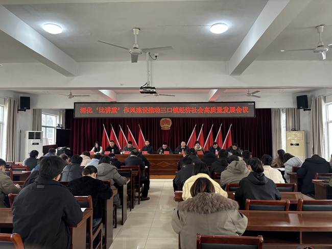 2月25日,三口镇召开深化“比讲重”作风建设推动经济社会高质量发展专题会议,深入贯彻省、市、区委新春第一会精神,部署一季度工作,凝聚干事合力。全镇干部职工、镇直单位及各村、镇直各党组织主要负责人参会。