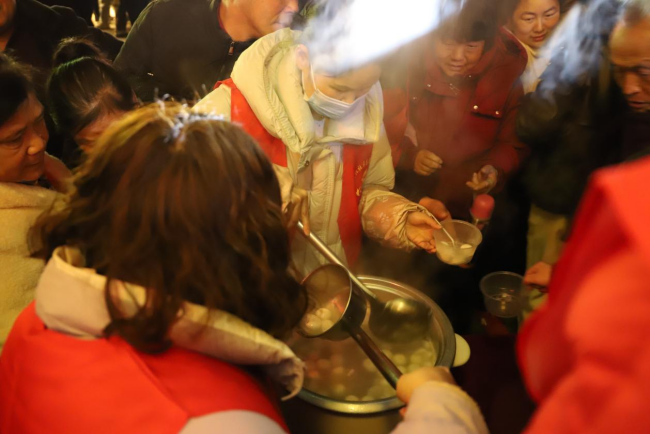 夜幕下,广场上的元宵主题布景熠熠生辉,大红灯笼高高挂起,暖融融的灯光将夜色装点得格外温馨。大批居民看到活动宣传视频后慕名而来,在社区志愿者的有序引导下欢喜入场。古艺传薪・非遗雅赏、灯韵漆香・手作寻趣、谜趣盈春・智解新章、暖食圆韵・情满新岁、投壶寄趣・雅玩迎春、骏文载韵・墨叙新程六大活动区域满场欢腾,群众穿梭其间、流连忘返,沉浸式感受传统佳节的独特魅力。现场人头攒动、喜气洋洋,在欢声笑语中勾勒出甘棠镇丙午马年新春的鲜活气象,让传统元宵佳节的人间烟火气在广场上浓浓绽放。