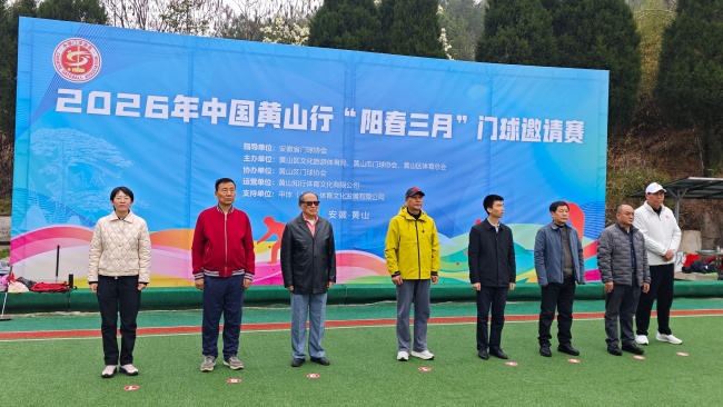 阳春三月,风光正好。3月11日至15日,2026年中国黄山行“阳春三月”门球邀请赛在安徽省黄山市黄山区隆重举行。来自全国11个省、直辖市的42支五人团体队伍、45支三人团体队伍、44支双人赛组合共计三百余名门球爱好者齐聚一堂,以球会友,共襄盛举。