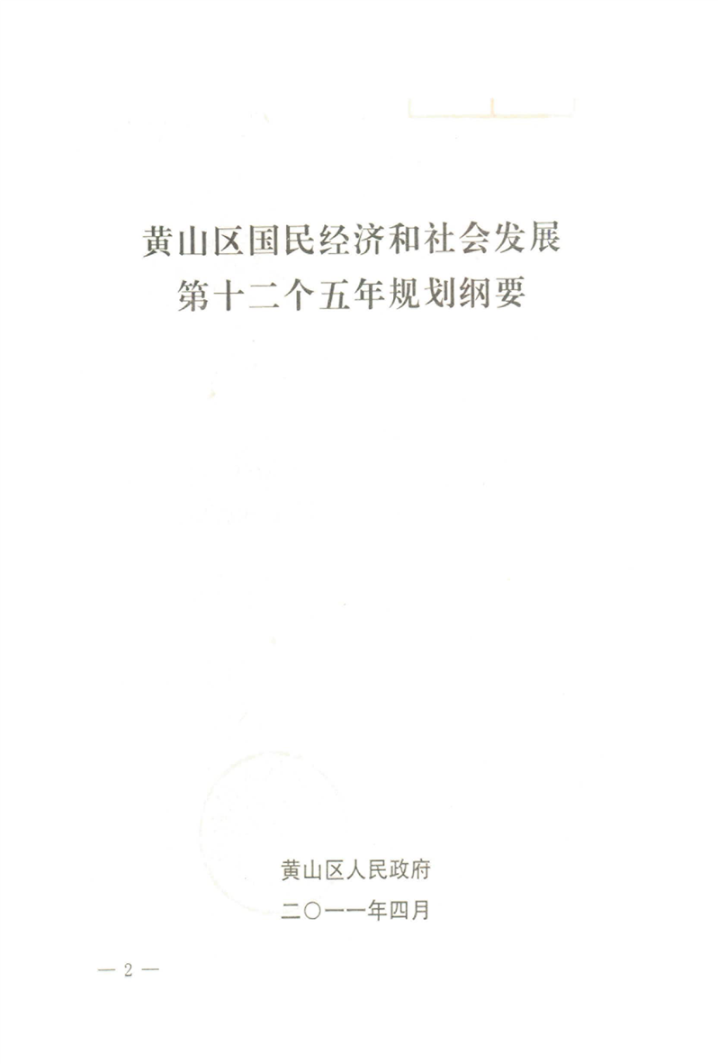 黄山区人民政府关于印发黄山区国民经济和社会发展第十二个五年规划纲要的通知