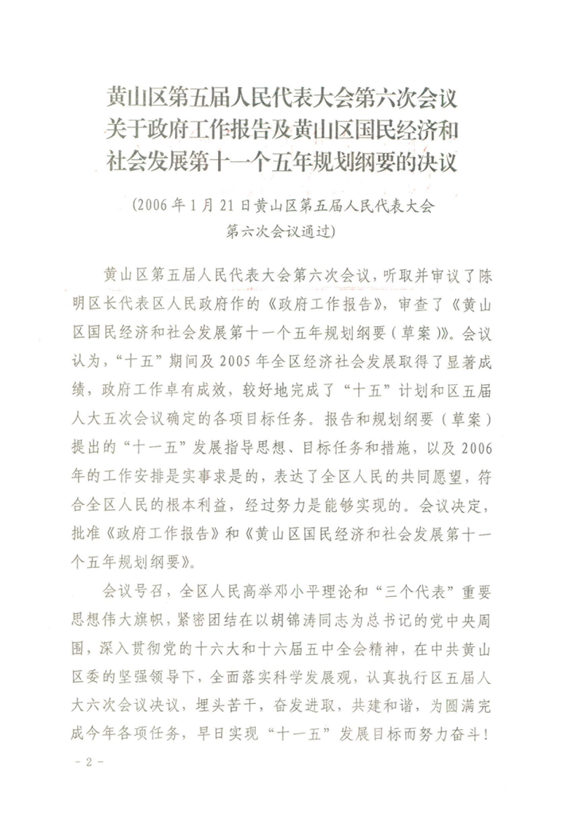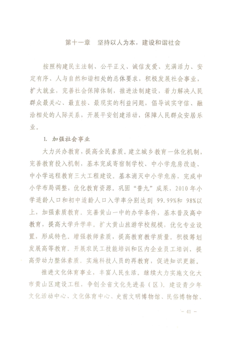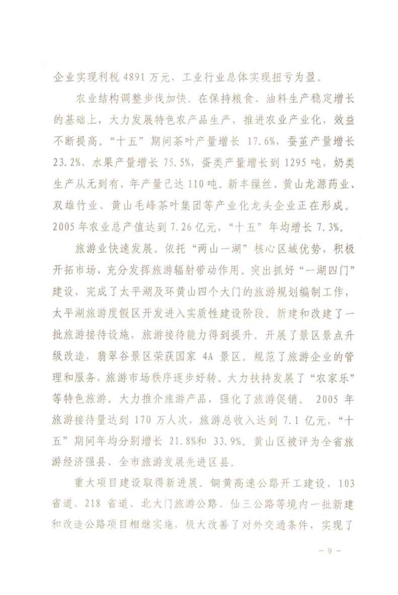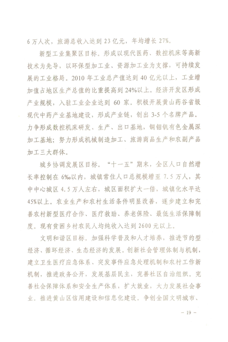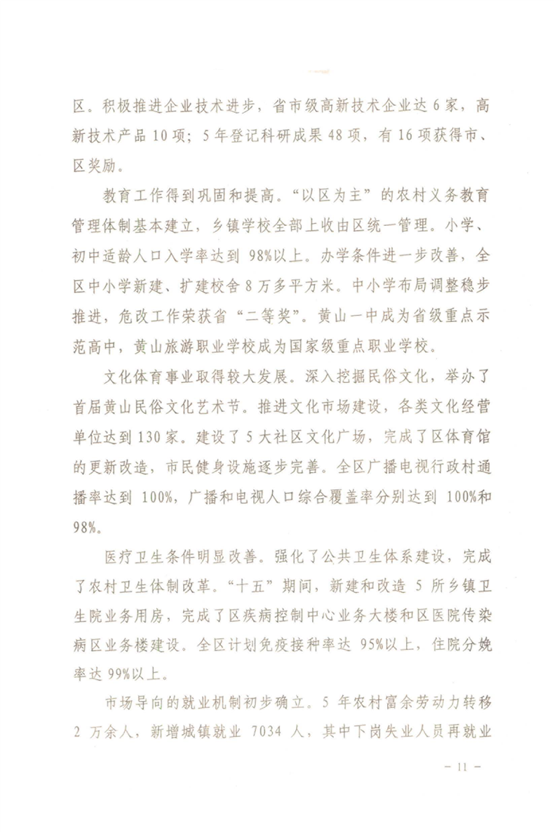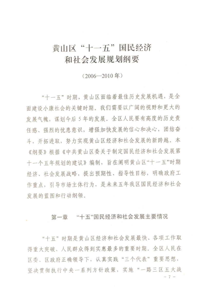 黄山区人民政府关于印发黄山区国民经济和社会发展第十一个五年规划纲要的通知