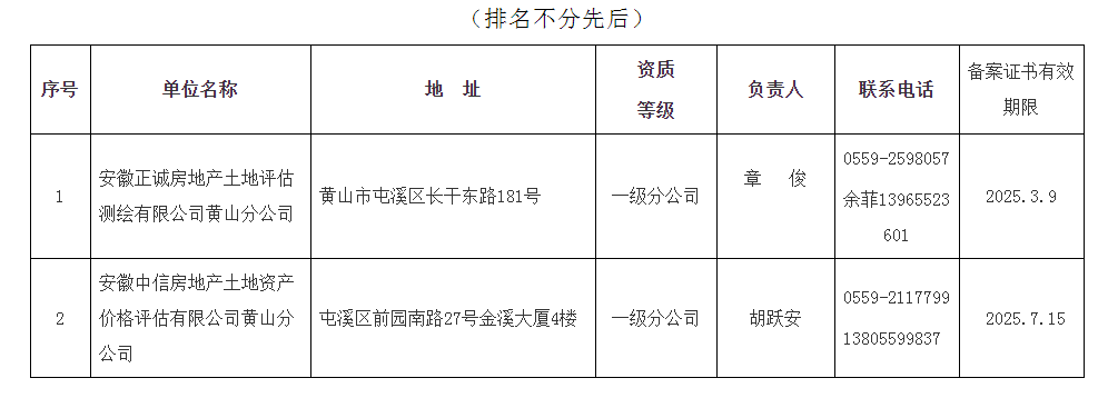 附:黄山市国有土地上房屋征收评估机构补充推荐名录