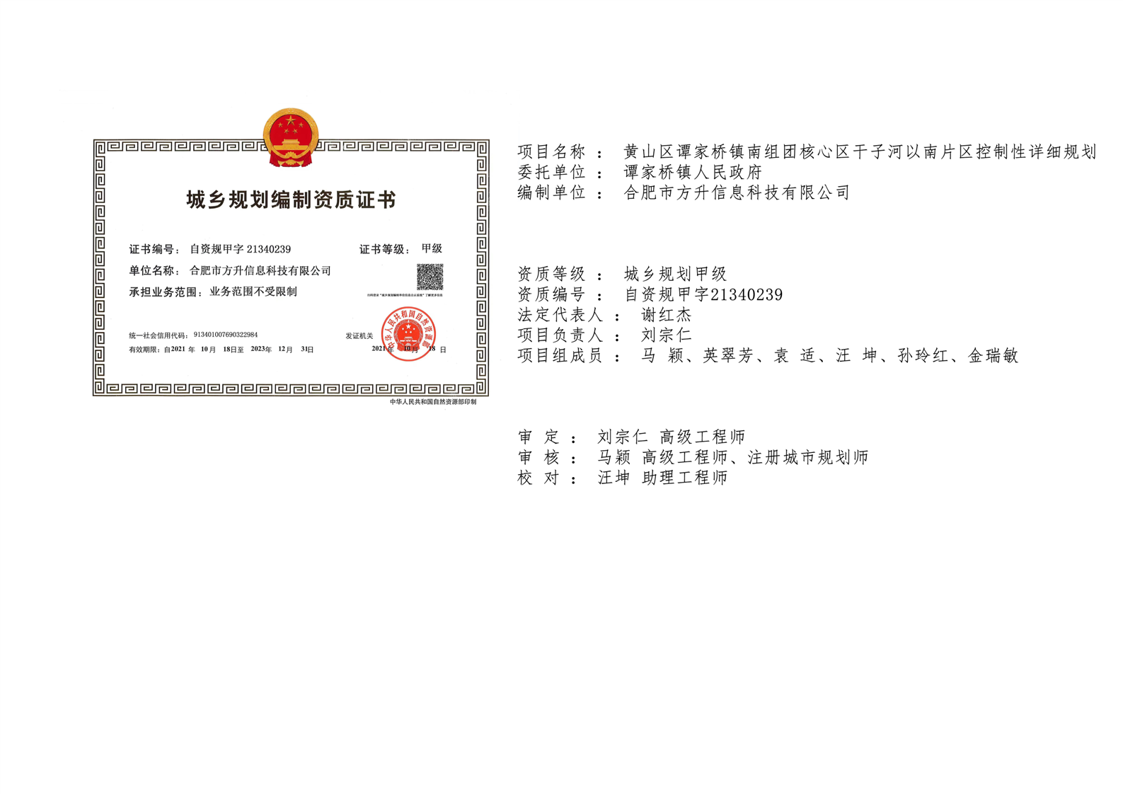 黄山区谭家桥镇南组团核心区干子河以南片区控制性详细规划