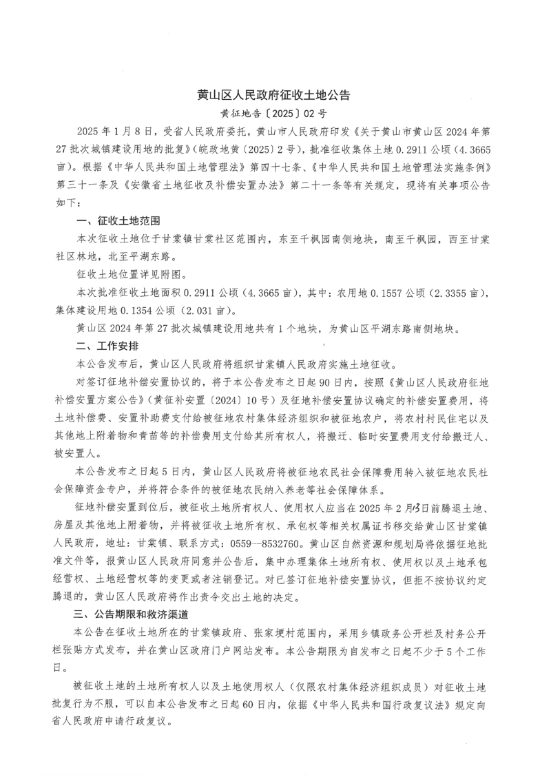 黄山区人民政府征收土地公告黄征地告〔2025〕02号