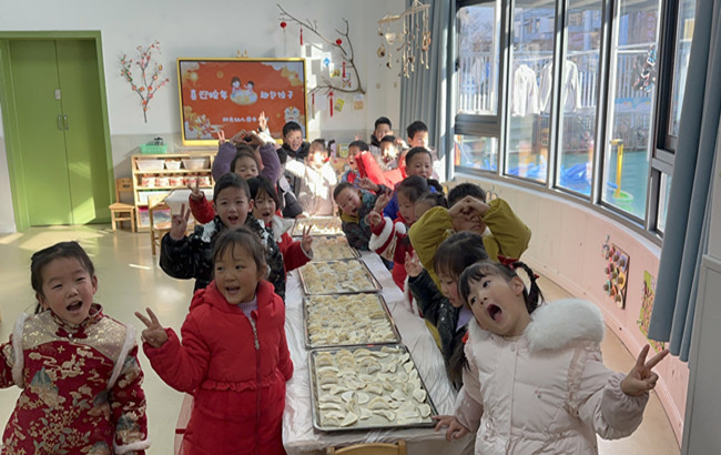 此外,部分班级还邀请家长志愿者和幼儿一起开展包饺子品年味活动。孩子们在家长的指导下,一招一式有模有样。从一个个形状各异的饺子到一碗碗热气腾腾的美食,让他们感受到亲子陪伴的幸福和浓浓的年味。