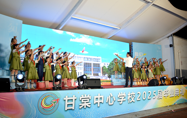 为培养孩子们的感恩情怀,激励他们带着童年赋予的乐观与自信,向着梦想勇敢启航,7月4日晚,甘棠中心学校于操场上隆重举办2025届毕业典礼。