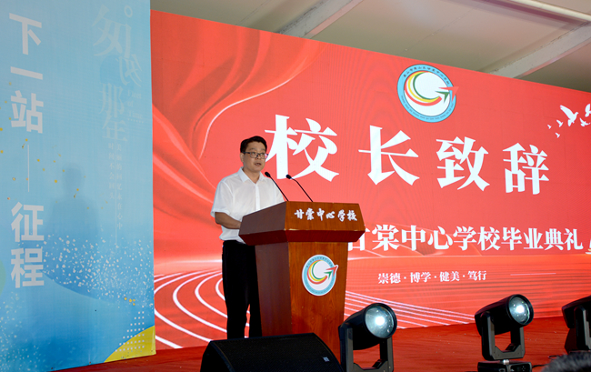 典礼伊始,甘棠镇人民政府党委书记刘波郑重宣布毕业典礼正式开始。随后,校长张先锋登台深情致辞。他向顺利完成小学六年学业的孩子们致以热烈祝贺,同时向默默耕耘、辛勤培育学子的老师们表达诚挚敬意。他希望同学们怀揣着母校的殷切期望,树立远大理想,在人生新的航程中乘风破浪,勇往直前。