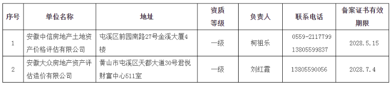 为规范我市国有土地上房屋征收评估工作,维护被征收人的合法权益,保障房屋征收评估工作顺利开展,根据国务院《国有土地上房屋征收与补偿条例》和《黄山市中心城区国有土地上房屋征收与补偿规定》的相关规定,现将具有评估资质且已向我办报备的国有土地上房屋征收评估机构推荐名录予以补充公布。