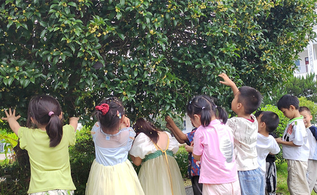 “老师,桂花好香呀!”学校的桂树下,孩子们的惊叹声与花香交织在一起。在老师的带领下,孩子们轻手轻脚地采摘着娇嫩的桂花,仔细观察着花瓣的形态与颜色,感受秋日自然的馈赠。采摘结束后,教室里一派忙碌景象:孩子们在老师的指导下筛选花瓣、沥干水分,再按照步骤一层桂花一层糖仔细铺叠,亲手将这份秋日清香封存进玻璃瓶中。“要等几天才能吃吗?”孩子们盯着罐中的糖桂花满心期待,在动手过程中不仅了解了传统美食的制作方法,更读懂了中秋“甜蜜团圆”的寓意。