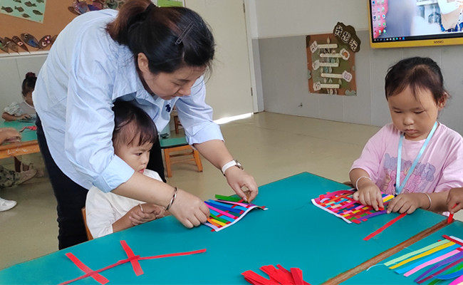 “中国地图像一只大雄鸡!”手工活动区里,老师通过图片向孩子们介绍着祖国的地域轮廓,爱国的种子在童真的好奇中悄然播撒。随后,孩子们拿起彩纸,在老师的示范下认真编织。裁剪、粘贴、编织、拼接,一双双小手虽显稚嫩却格外专注,原本零散的彩绳渐渐勾勒出熟悉的地图轮廓。当完整的编织“中国地图”呈现在眼前时,孩子们纷纷伸出小手触摸,眼中满是自豪。这场编织实践,让孩子们在锻炼动手能力的同时,真切感受着祖国版图的辽阔,将爱国情怀融入每一次的动手编织之中。