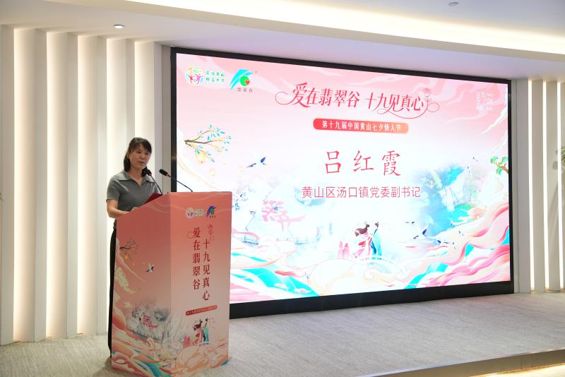“接天莲叶无穷碧,映日荷花别样红。”在这热情似火的盛夏时节,我们带着黄山汤口的清凉问候与七夕的浪漫期许,相聚在美丽的诗画杭州、西子湖畔,共同为第十九届中国黄山七夕情人节拉开序幕。首先,我谨代表汤口镇党委、政府,向莅临本次发布会的各位领导、媒体朋友、旅游界同仁,表示最热烈的欢迎和衷心的感谢!同时,也向长期以来关心、支持汤口文旅事业发展的各界朋友,致以崇高的敬意和诚挚的谢意!