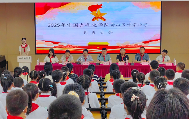 大会在庄严的出旗曲中拉开帷幕,全体少先队员代表和少先队辅导员向队旗敬礼,响亮的《我们是共产主义接班人》歌声展现全体代表良好的精神风貌。会议首先召开2025年中国少年先锋队黄山区甘棠小学代表大会。学校党组织代表胡永刚向大会致贺词。甘棠小学少先队大队辅导员李娟和少先队大队长朱冠霖向大会做《甘棠小学2024-2025少先队工作报告》,总结上一学年学校少先队工作成果,全体代表审议并通过了报告。随后,大队辅导员代表学校少工委答复红领巾小提案,针对少先队员们提出的关于学校管理与后勤、队员心理健康等8个方面的提案给予了细致回复,充分体现了学校少先队组织对队员们心声的重视。