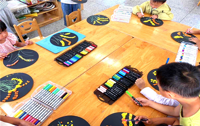 绘本故事结束后,“五谷丰登”创意美术活动随即展开。在老师的引导下,孩子们用棉签蘸取胶水,小心翼翼地将不同颜色的粮食颗粒粘贴在画纸上——黄色的玉米拼成小太阳,红色的红豆串成小果子,褐色的水稻粒铺成“小土地”。虽然小手略显笨拙,但每个孩子都专注投入,原本空白的画纸,渐渐变成了一幅幅充满童趣的“丰收图”。活动最后,孩子们捧着自己的作品互相展示,嘴里念叨着“这是我做的五谷画,要爱惜粮食呀”,绘本里的道理,就这样通过指尖的创作,深深印在了心里 。