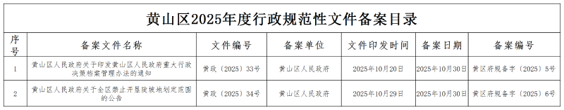 【备案登记】2025年第四季度黄山区人民政府行政规范性文件备案目录