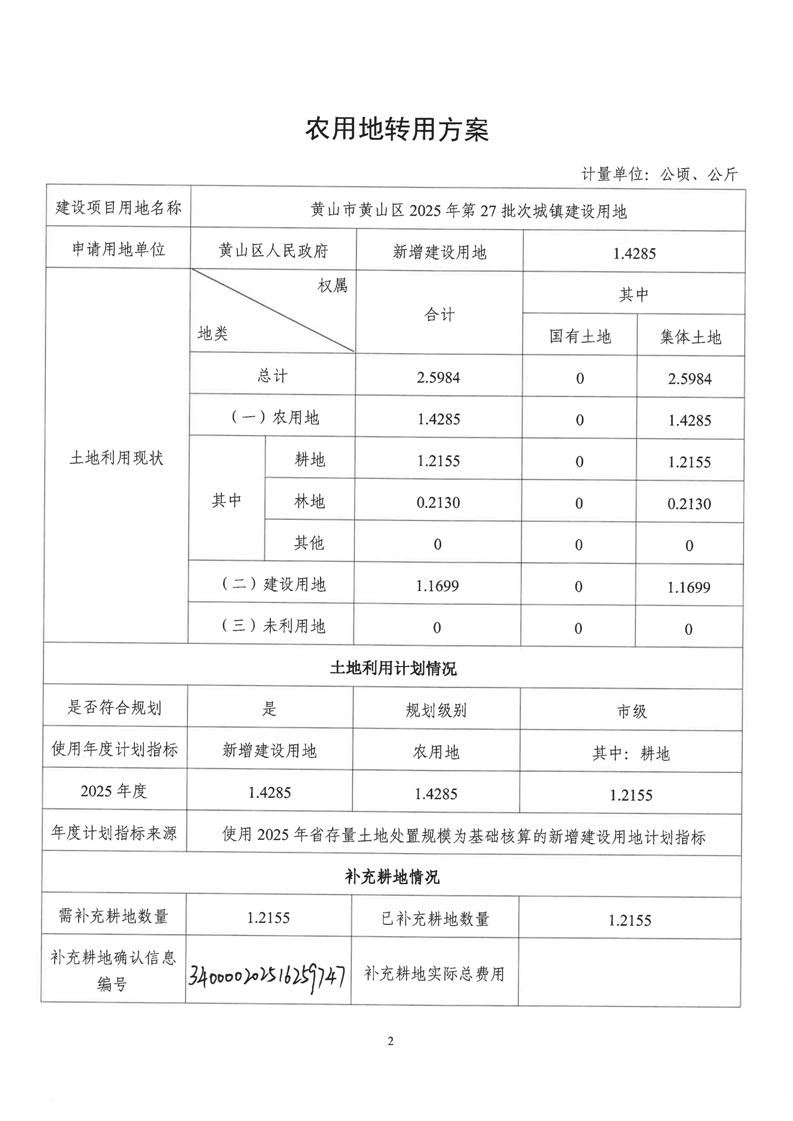 黄山市黄山区2025年第27批次城镇建设用地转用方案