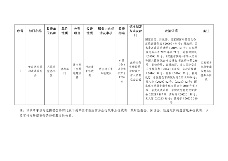 黄山区发改委及下属单位综合性涉企收费目录清单