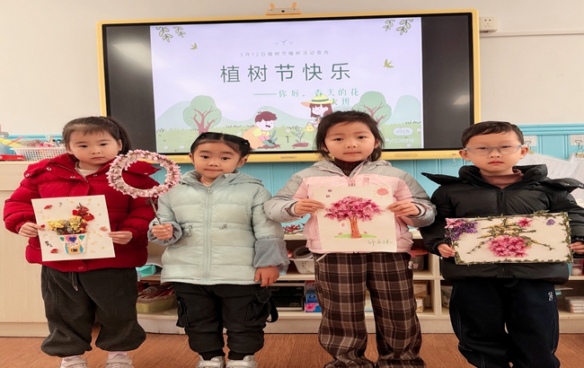 活动中,各班教师通过科普视频、知识讲解等形式,向幼儿介绍植树节的由来及树木对生态环境的重要作用,组织幼儿围绕低碳环保、无塑生活展开讨论,发出环保倡议,让幼儿深刻理解保护花草树木就是守护共同家园,初步建立环保责任感。小、中、大班分别就制绿、绘绿、植绿、遇见春天等主题开展了活动,以巧手、颜料等形式表达对自然的喜爱,提高动手能力,感受变废为宝的乐趣,用行动为幼儿园增添绿意。