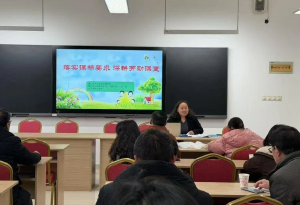 随后,王丽名师工作室主持人王丽以《落实课标要求 深耕劳动课堂》为题开展专题培训。培训中,王丽老师紧扣“健康第一”教育方针,从新课标领航明确劳动课“方向标”、课堂实践落实破解“怎么教”难题、常见问题解答打通教学“堵点难点”三个维度展开讲解,强调劳动课是义务教育必修课程,要紧扣三大类劳动、十个任务群的内容框架,坚守动手实践、以劳育健的核心原则;同时从备课、授课、学习延伸、评价四个步骤,为教师们讲解劳动课堂的实操方法,指导教师在教学中兼顾技能培养与身心健康培育,并针对课时不足、场地工具匮乏、学生劳动兴趣不高等教学常见问题,给出了切实可行的解决策略,为全区劳动教师深耕劳动课堂、提升教学实效提供了专业指导。