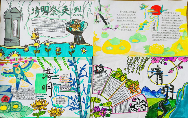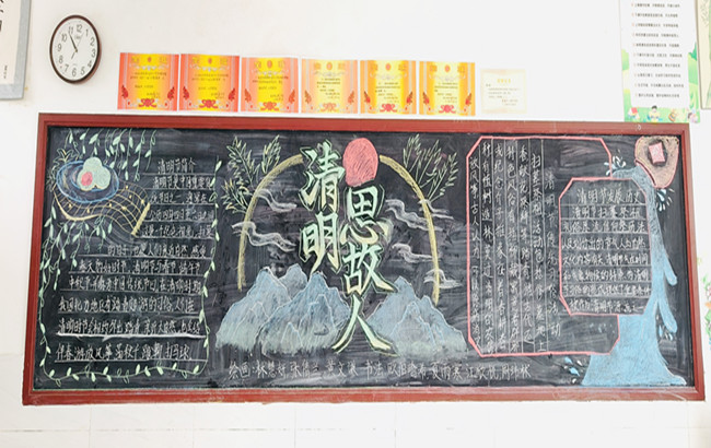 此外学校同步开展主题创作活动,大队委员精心制作“缅怀先烈 寄语清明”主题手抄报,以笔墨绘初心,将清明文化、英烈事迹与爱国感悟融于版面;九年级围绕“清明忆先烈 奋斗正当时”打造主题黑板报,彰显学校“以文化人、以德育心”的育人特色。