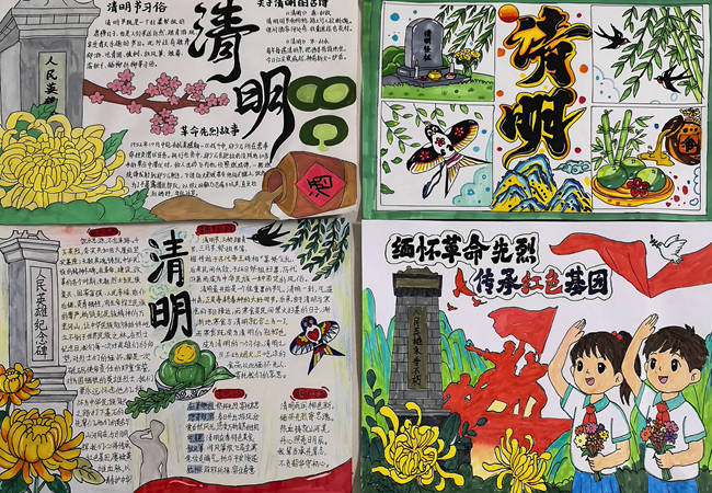 各年级中队活动精彩纷呈,注重实践与感悟。一年级通过主题班队会和动手制作青团、草头饼,体验清明民俗;二年级举办“革命英烈故事我来说”故事会并进行主题绘画,传承红色精神;三年级组织观看爱国影片,并利用自然材料制作创意书签,寄托春日哀思与美好;四、六年级则开展“诵读清明诗词”主题队会,并设计制作内容涵盖先烈故事、习俗与诗词的手抄报,深化对节日文化的理解。