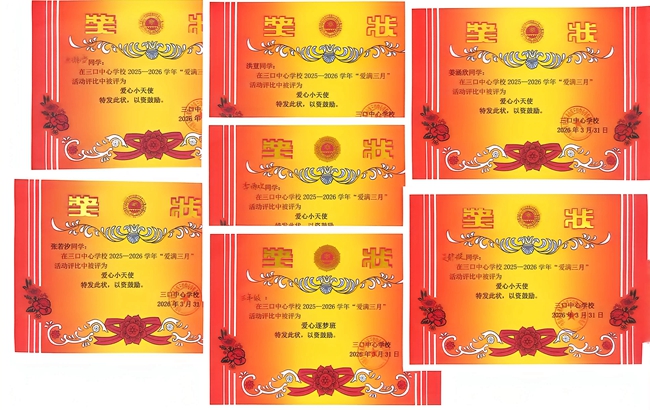 春风送暖,爱心育人。为总结三月“爱心月”系列活动的丰硕成果,表彰先进典型,进一步深化校园文化建设,推动“健康校园”理念落地,3月31日,三口中心学校隆重举行以“‘品’文化引领·爱满三月”为主题的爱心月表彰大会,为持续近一个月的爱心主题系列活动画上圆满句号。本次活动将“爱心月”与学校“十大好习惯”培育有机融合,让奉献精神在习惯养成中扎根,让爱的生长在健康校园里蓬勃绽放。