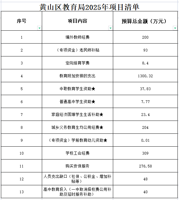 黄山区教育局2025年项目清单