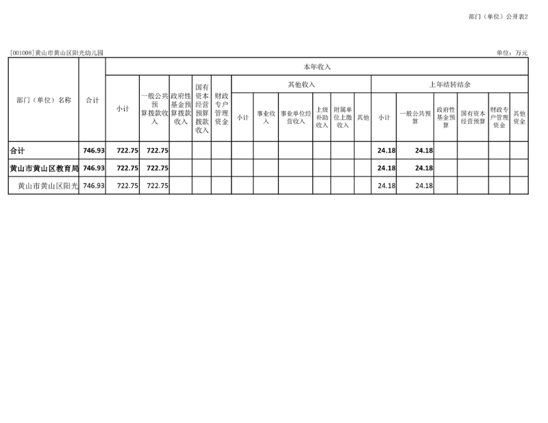 黄山市黄山区阳光幼儿园2026年收入预算746.93万元,其中:本年收入722.75万元,上年结转收入24.18万元。