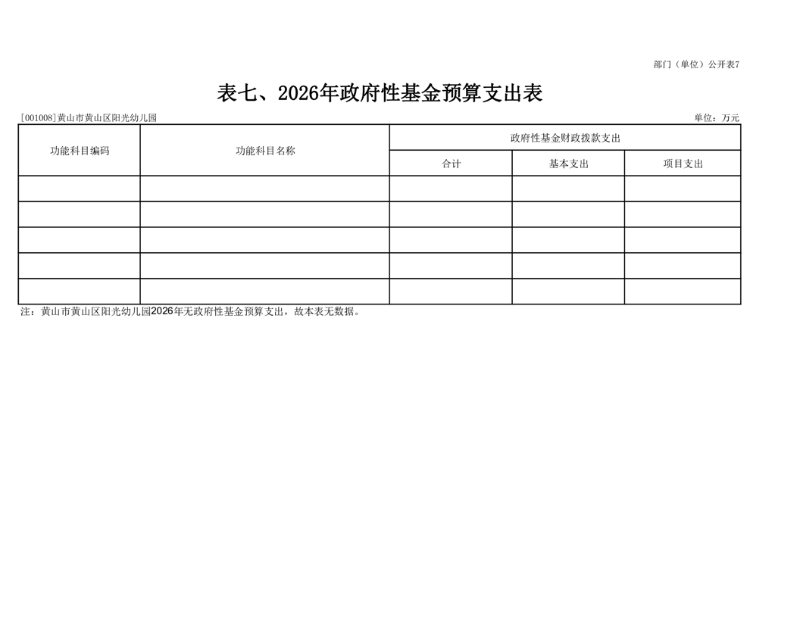 7.黄山区阳光幼儿园2026年政府性基金预算支出表