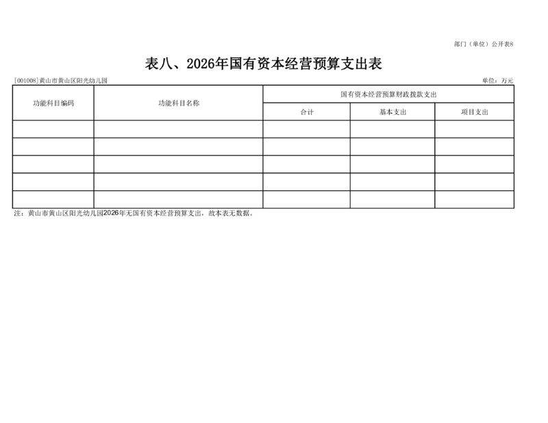 8.黄山区阳光幼儿园2026年国有资本经营预算支出表