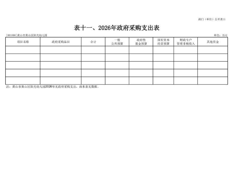11.黄山区阳光幼儿园2026年政府采购预算支出表