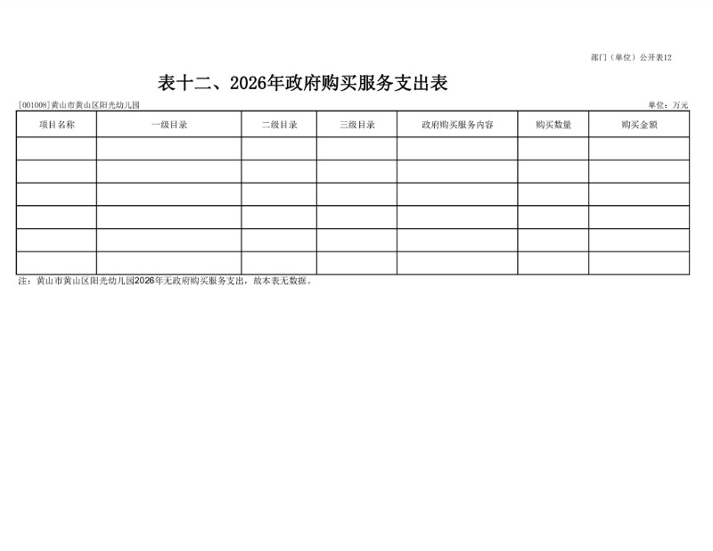 黄山区阳光幼儿园2026年没有安排政府购买服务支出。