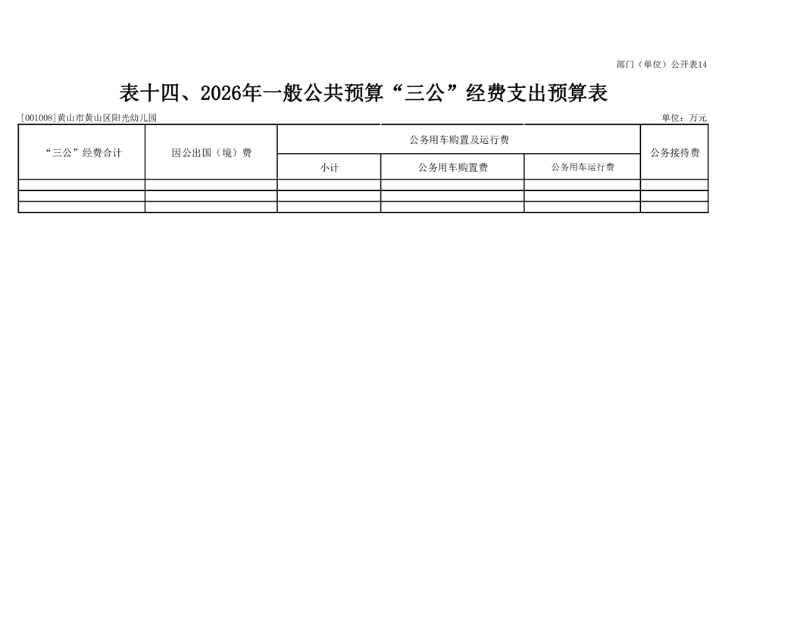 14.黄山区阳光幼儿园2026年“三公”经费财政拨款支出预算表