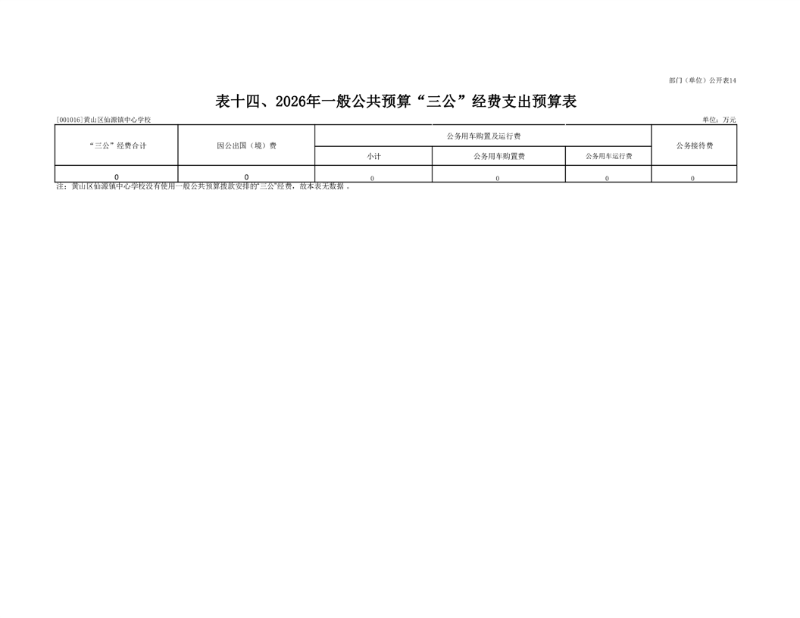 14.黄山区仙源镇中心学校2026年“三公”经费财政拨款支出预算表